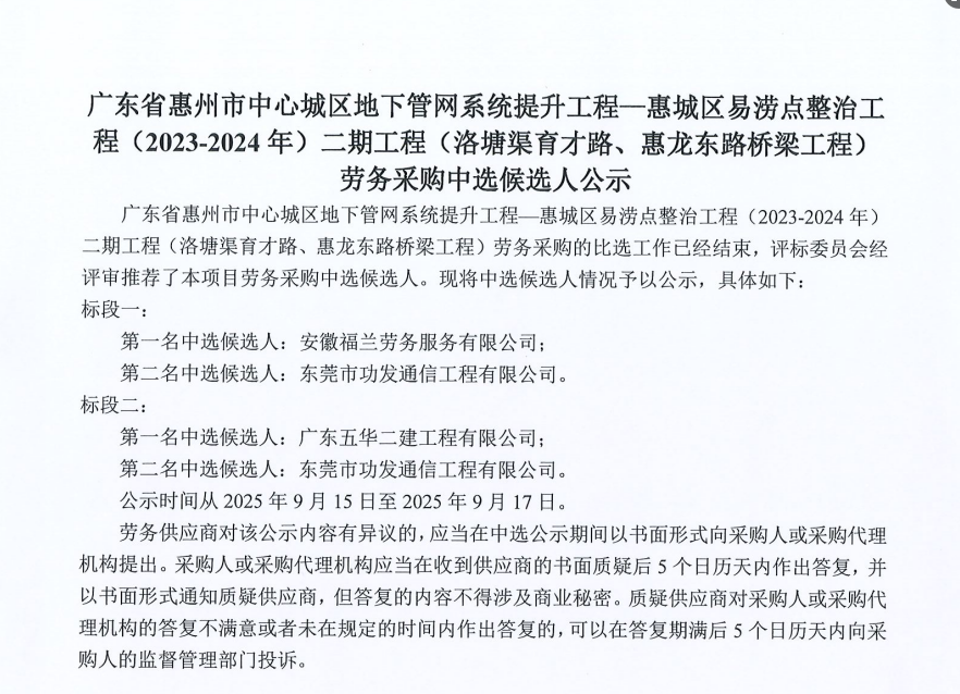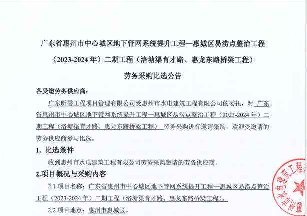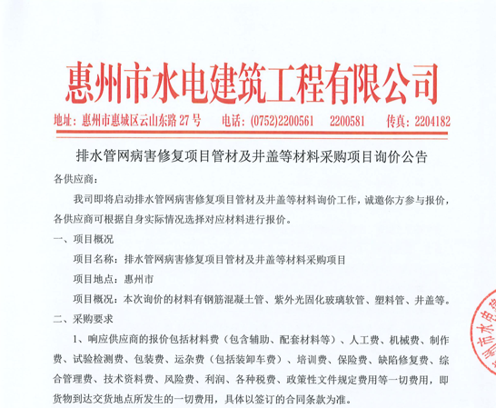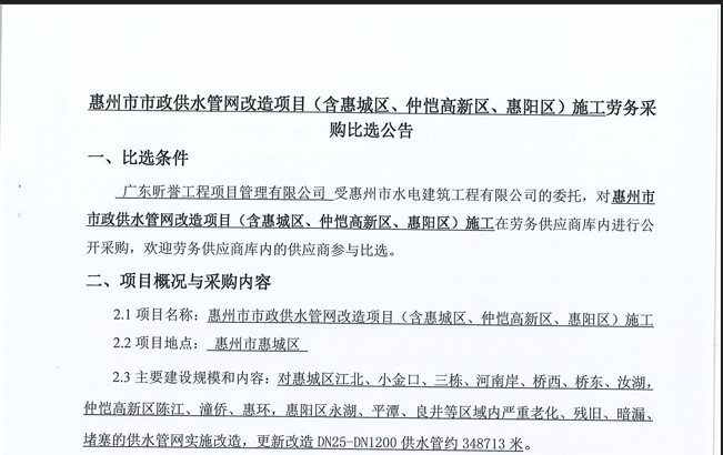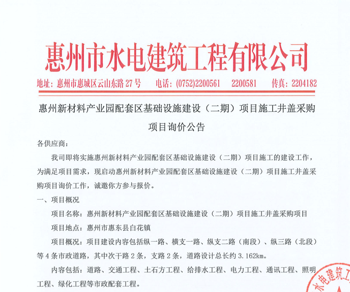 惠州市水電建筑工程有限公司成立于一九六四年四月,隸屬惠州市水務(wù)集團(tuán)有限公司,是一家國有綜合性施工企業(yè),主營水利水電工程、房屋建筑、市政工程等施工業(yè)務(wù)。公司擁有水利水電工程施工總承包一級、建筑工程施工總承包一級、市政公用工程施工總承包一級、公路工程施工總承包三級,公路路基、路面及建筑裝修裝飾專業(yè)承包二級,環(huán)保工程、機(jī)電安裝、河湖整治、輸變電工程專業(yè)承包三級等經(jīng)營資質(zhì)……